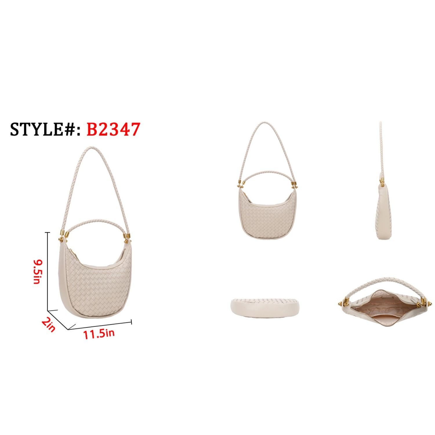 Shoulder strap to zipper : 10 inches long